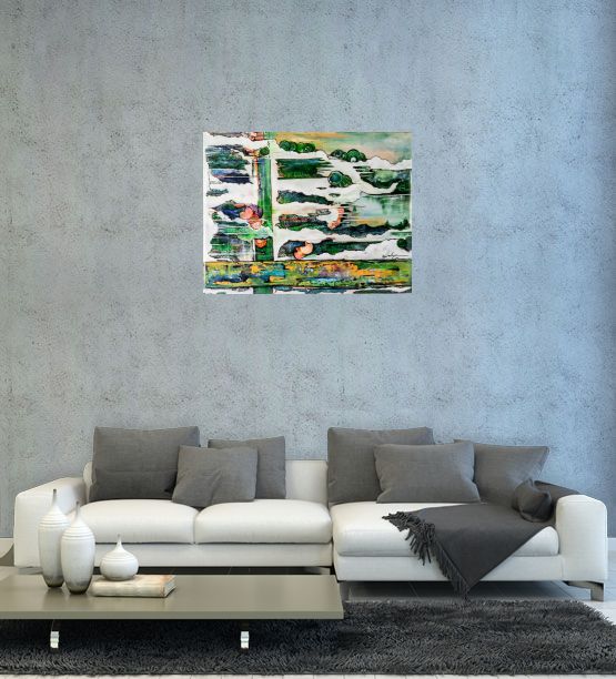 Artwork is shipped as framed and size is 98 cm x 78 cm.